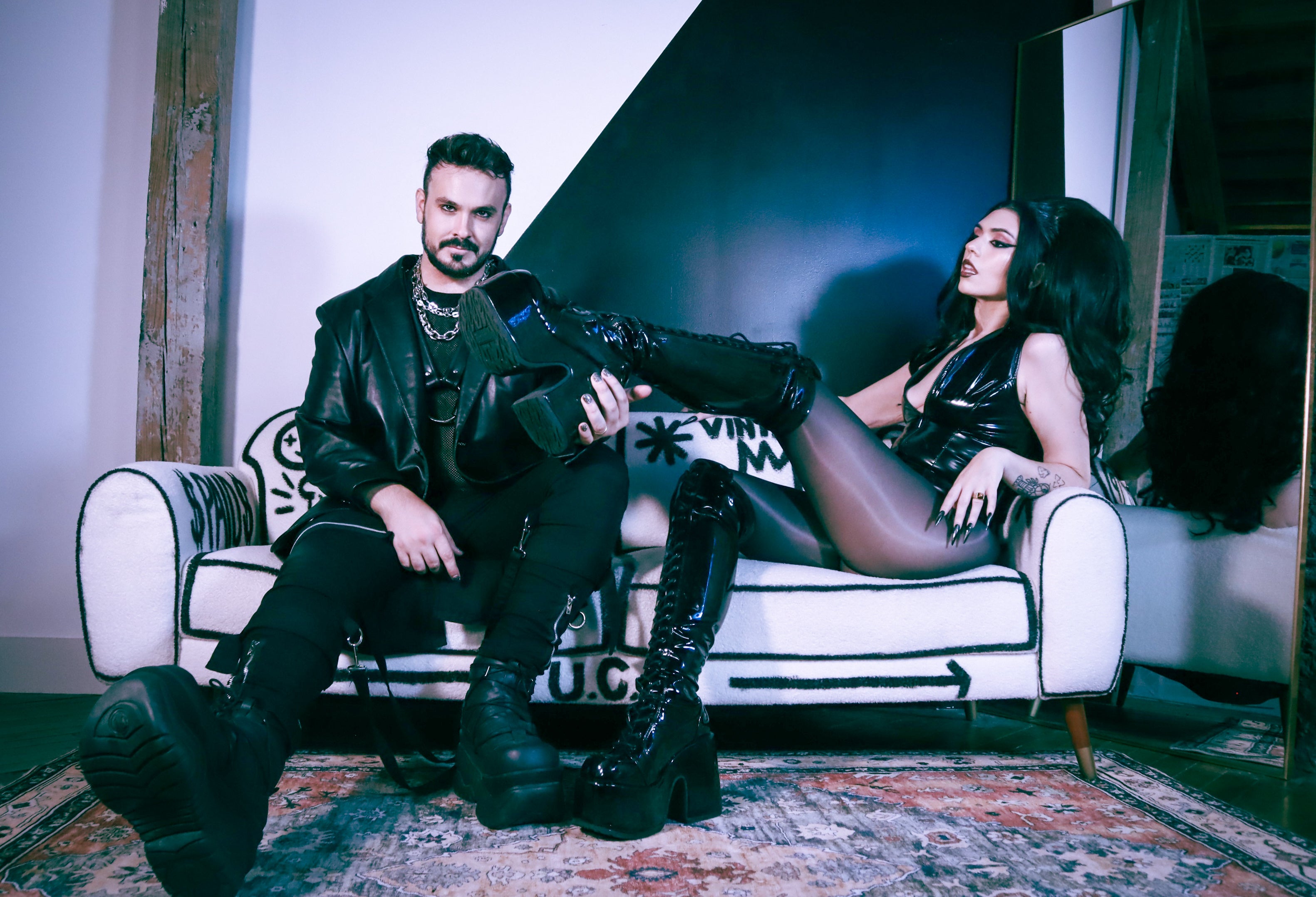 K3YP4RTY is a violent kiss in the dark—a sinister dance-pop duo built to dominate. Fronted by real-life kink power couple Acadia Grey, a professional dominatrix, and Asher Grey, a professional dominant, K3YP4RTY isn't here to entertain you. They're here to own you.
